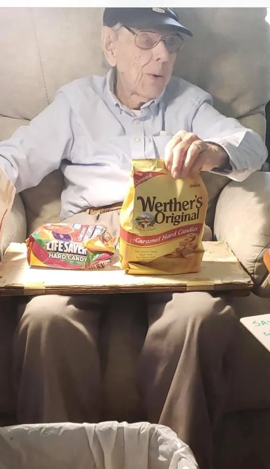 During 2020, we were not able to meet together easily. However we did not let that stop us from spreading kindness in our community. When we learned of a special WWII veteran celebrating his 102nd birthday, the crew went to work making birthday cards. The Bell family collected all of the cards and made a care package complete with Pop Pops favorite treats. He loved receiving a special surprise on his birthday, and we loved being able to be a small part of his special day.