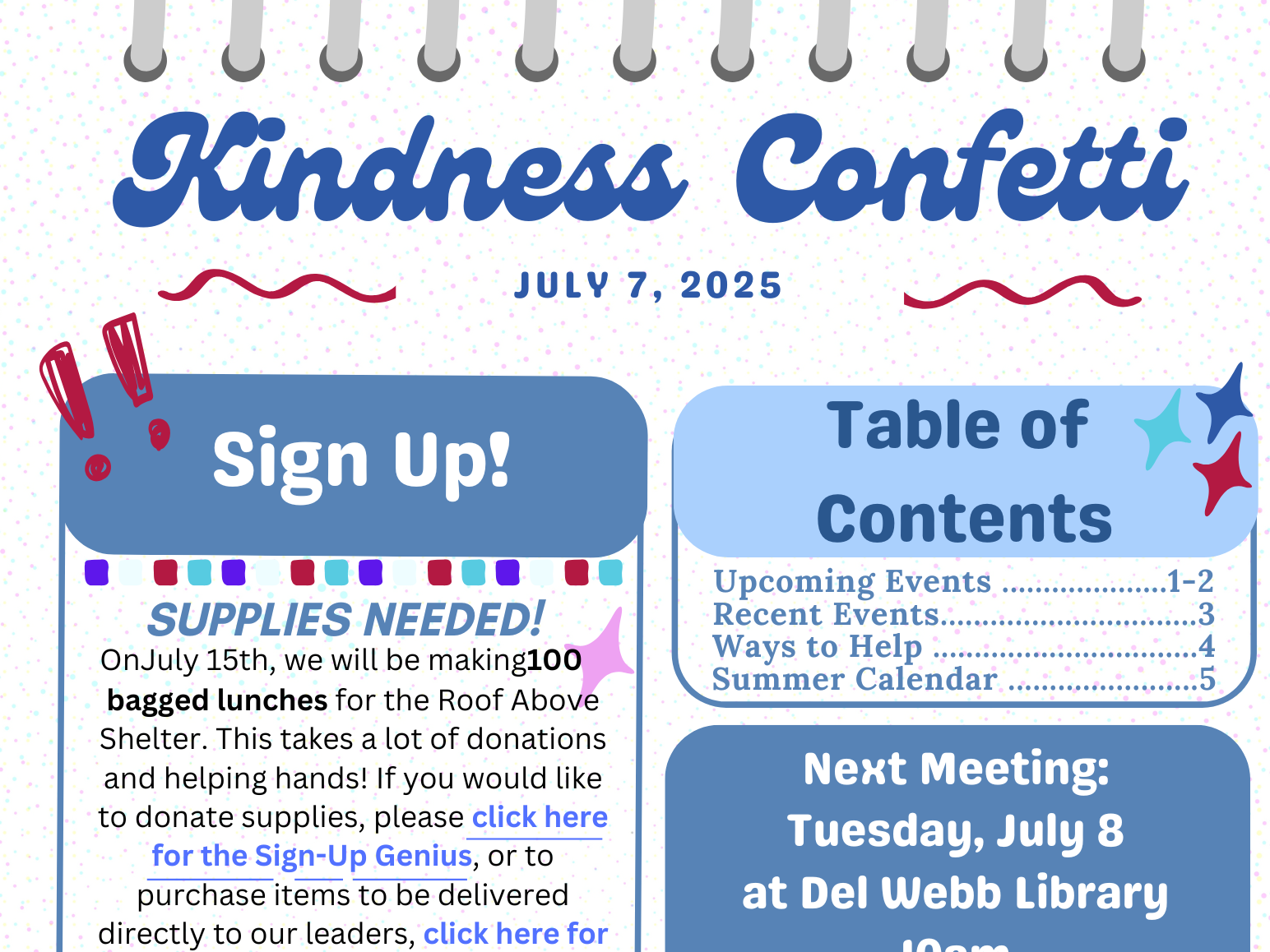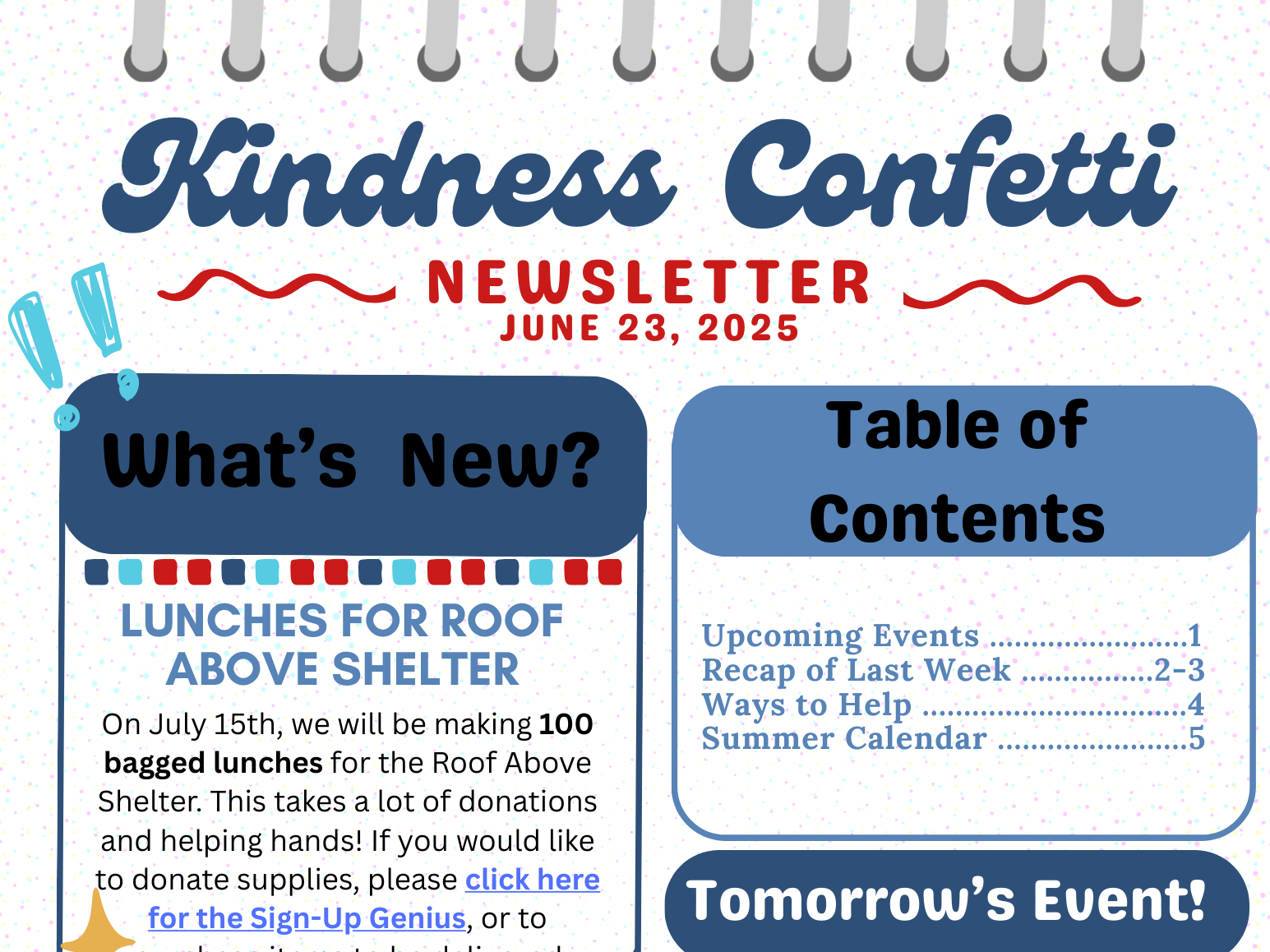Kindness Confetti Crew Newsletters